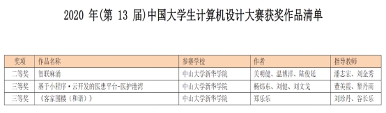 2020年(第13届)“中国大学生计算机设计大赛”省赛获奖名单