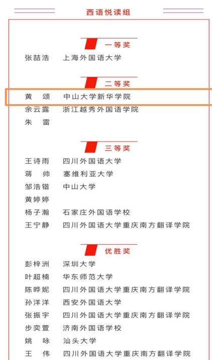 我校西班牙语专业学生黄颂荣获西语悦读组二等奖