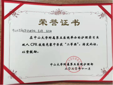 我校护理实习生在中山五院双人CPR技能竞赛中荣获二等奖