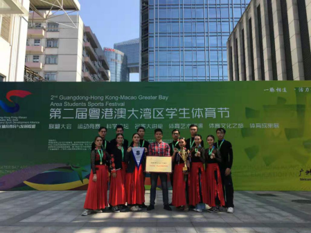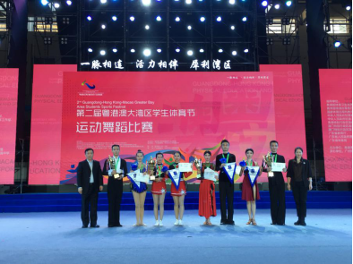 为推动我校与港澳台等地高校之间的体育交流与合作,我校体育舞蹈队在体育系负责人和全体教师的大力支持与协助下,由丁建敏老师担任教练,共派出12名队员参加“第二届粤港澳大湾区学生体育节”运动舞蹈项目竞赛,获得了一等奖和最佳团体奖。