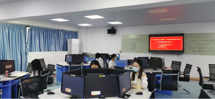 本次大赛严格落实疫情常态化防控的要求,决赛全程采用线上直播的形式举行,由参赛各校在校内机房组织本校选手统一参赛。我校7名参赛选手在学校外国语学院翻译实训室参赛,与位于广东外语外贸大学的组委会连线,同来自广东省的57所高校的267名选手激烈角逐。