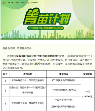 中大新华健康学院凌霄志愿服务队(序号3)“青苗计划”社区志愿服务项目公示名单