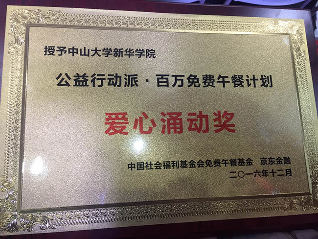 我院被授予公益行动派•百万免费午餐计划——爱心涌动奖