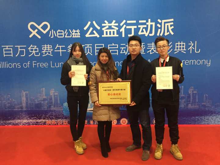 12月7日晚,2016年京东1000000+免费午餐计划项目表彰典礼在京举行,活动主题为“只为孩子添一碗午饭,让世界看到我们的力量”。在该公益行动计划中,beat365英国官网网站新华学院用一个月的时间,筹得3996份免费午餐,解决了40位山区儿童一个学期的温饱问题,捐赠份数排名全国第五,被授予公益行动派•百万免费午餐计划——爱心涌动奖,成为当晚在北京水立方第一批点亮校名的高校之一。