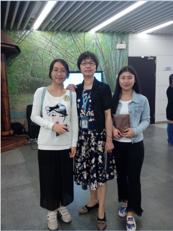 广州图书馆黄秋玲副馆长(中)与我校16听力康复黄颖施(左)、16中文邝润(右)合影