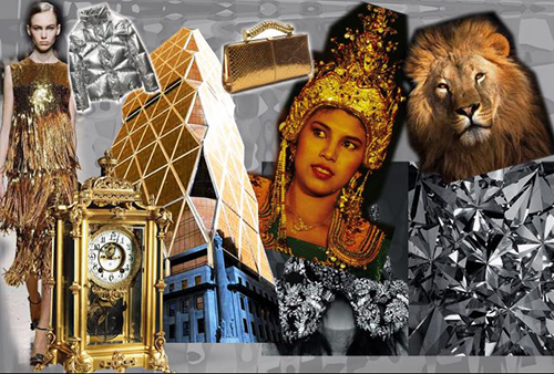 陈博洋同学说:“为了筹备比赛作品,我花了很多的心思和时间,也得到了郑培心老师的支持与指导。从最初的创建构思,寻找灵感源,直到受到比赛主题‘现代金属’的启发,才把作品创造出来,我的作品把复古金属和现代金属做了一次大胆地融合,图案和金属三角的切割源自美国赫斯特大厦的构造和外形,在颜色上选择了富丽的黄金色,款式上选择秋冬造型,将羽绒和毛绒面料进行重构组合,将复古的调色和当今的金属进行结合,创造一个现代的金属时代!”