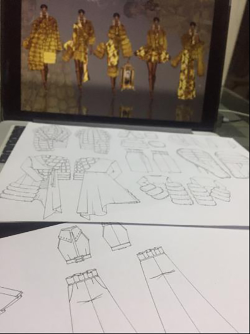 陈博洋同学表示,自己在款式的绘画上下了很大的功夫,从绘制的40套款式图中选择了5套辅佐整个系列,再用面料印花上的图案和灵感源结合,配色、配饰上的选择也与主题紧紧相扣。虽然准备作品的时间很紧迫也很辛苦,经常都要熬到凌晨3、4点,但相比辛苦,享受整个过程中的成长是更值得去珍惜和拥有的!我由衷地感谢每一位教过我的中大新华服装专业的老师,是你们让我更有能力,用平日所学专业而又创新地去完成一件又一件优秀作品,为中大新华艺术与传媒学院争光。