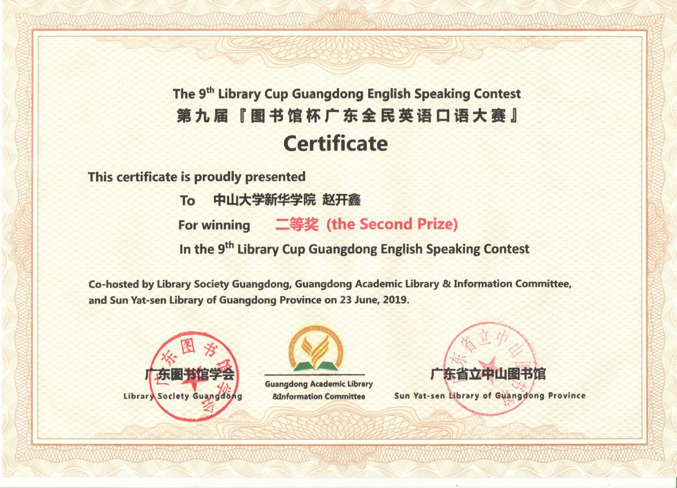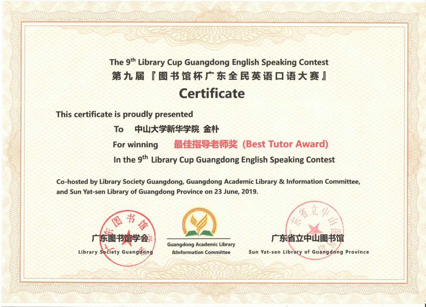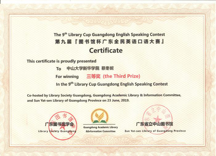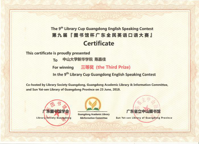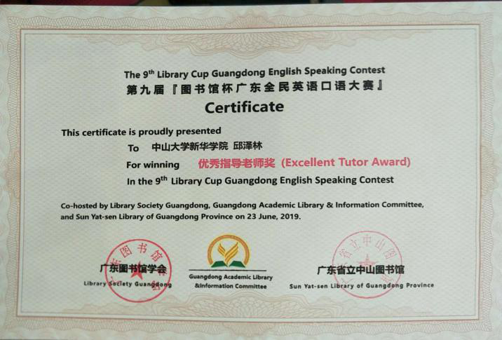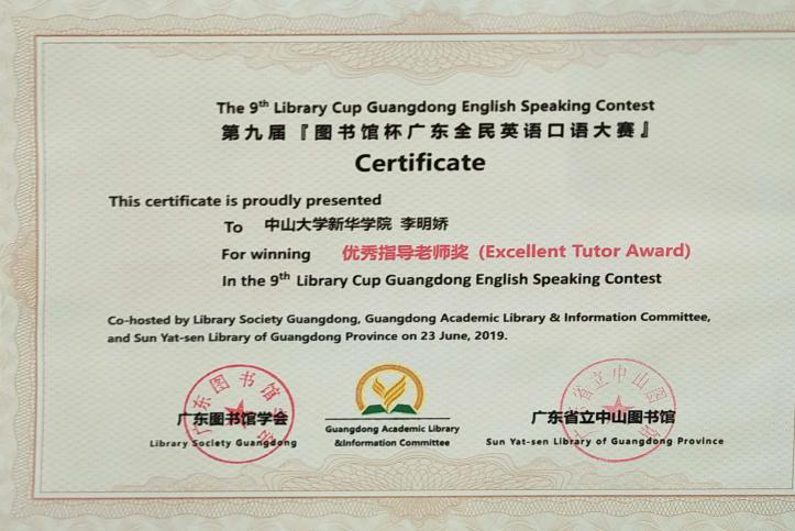 我校师生读者获2019年第九届“图书馆杯”广东全民英语口语大赛广东赛区二等奖、三等奖