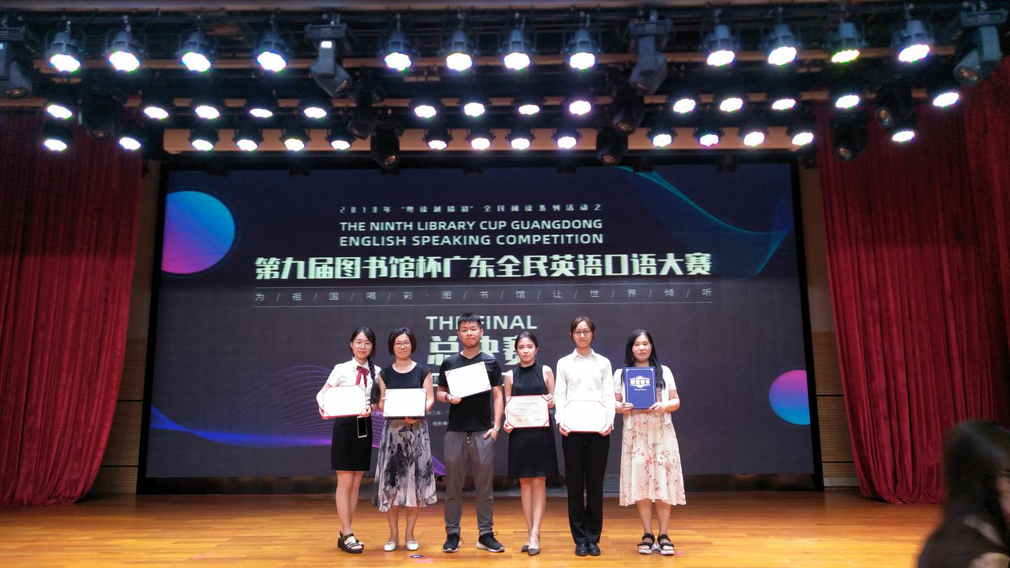 6月23日,由广东图书馆学会、广东省高校图工委、广东省立中山图书馆主办的2019年第九届“图书馆杯”广东全民英语口语风采展示活动广东赛区总决赛成功举行,我校赵开鑫、陈嘉佳和蔡冬妮同学等参赛,我校图书馆活动负责人唐玉佳老师、外国语学院李明娇和金朴老师到场观赛和指导。