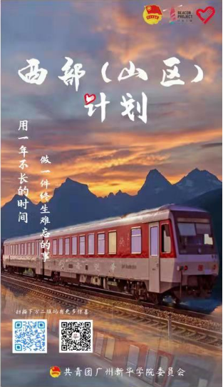校团委定期在新媒体平台上定期推送相关文章,普及西部(山区)计划的内容,在饭堂、校内宣传栏及教学楼内放置、张贴及悬挂大量有关西部(山区)计划的资料、横幅及海报,多样化进行线下宣传。