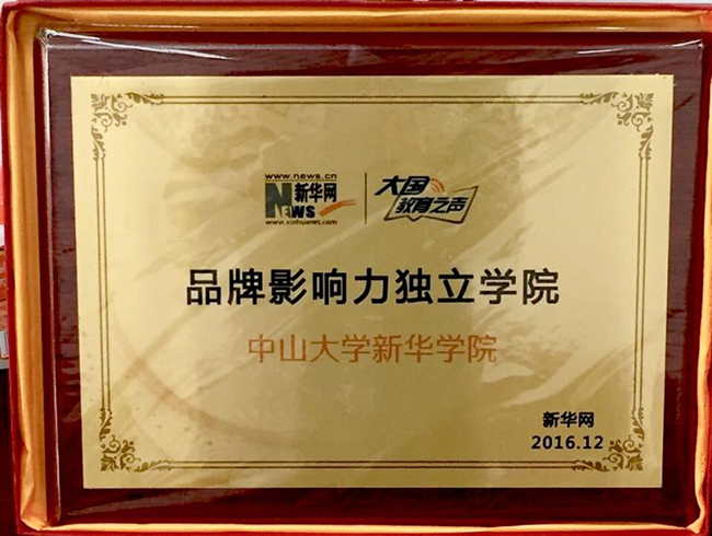 beat365英国官网网站新华学院荣获“2016中国品牌影响力独立学院”殊荣