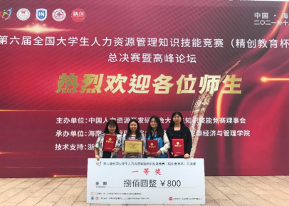 10月23日至24日,第六届全国大学生人力资源管理知识技能竞赛(精创教育杯)总决赛暨高峰论坛在海南大学举行。我校2019级人力资源管理专业学生黄敏蕊、谭燕红、赖楚滢、莫惠兰组成的代表队荣获一等奖;谭婉斌、唐玲教师荣获“优秀指导老师奖”,罗亮梅、区展玲、杨双玲教师荣获“历届优秀指导教师金奖”,我校荣获“最佳组织奖”。