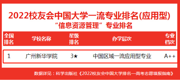 我校信息资源管理专业获评2022校友会中国大学一流专业榜排名榜“中国区域一流应用型专业”