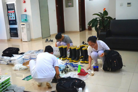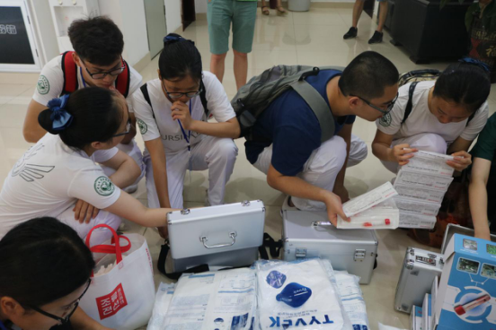 “非预防医学组”竞赛环节包括心肺复苏(cpr)和应急演练医学救援演练。赛前,两支队伍提前到比赛场地熟悉装备,再次认真聆听指导老师给予的指导。在心肺复苏环节中,一组3人分工合作——打电话呼救,心外按压和人工呼吸,3人默契十足,动作连贯,沉着应对;在应急演练环节中,队员们从容不迫,把应急救援的各步骤逐一检查,穿脱防护装备、发现疫情、急救、消毒和最后的报告,每个环节都表现得精彩绝伦。