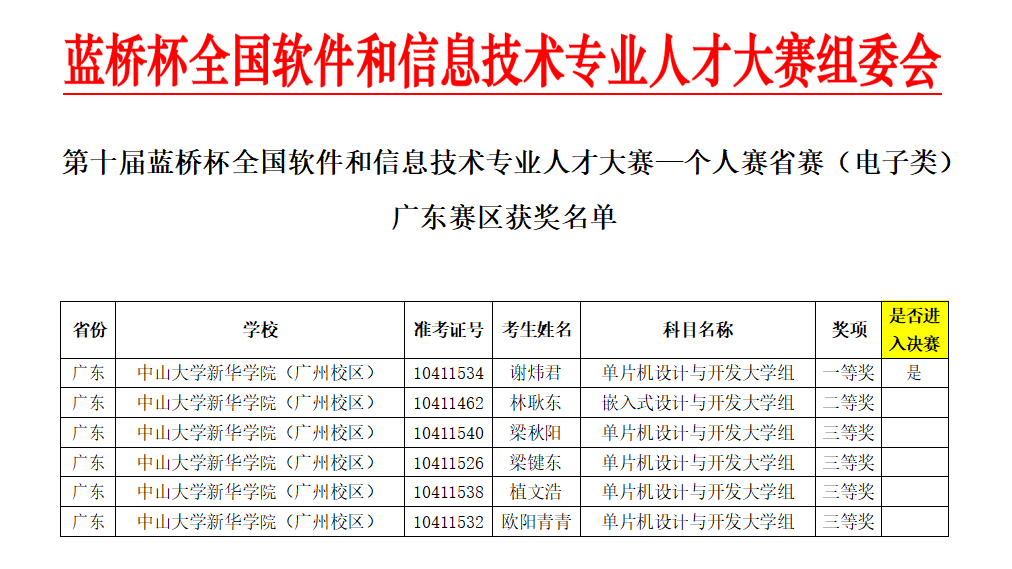 3月24日,第十届蓝桥杯全国软件和信息技术专业人才大赛个人赛(电子类)广东省赛在广东水利电力职业技术学院举行,我校生物医学工程学院9名学生选手由徐现通老师指导参赛,其中谢炜君、林耿东等六名选手分别获得一、二、三等奖。本次大赛是我校学生选手在“单片机设计与开发”项目中首获一等奖,其中谢炜君同学进入全国决赛;“嵌入式设计与开发”项目突破二等奖。