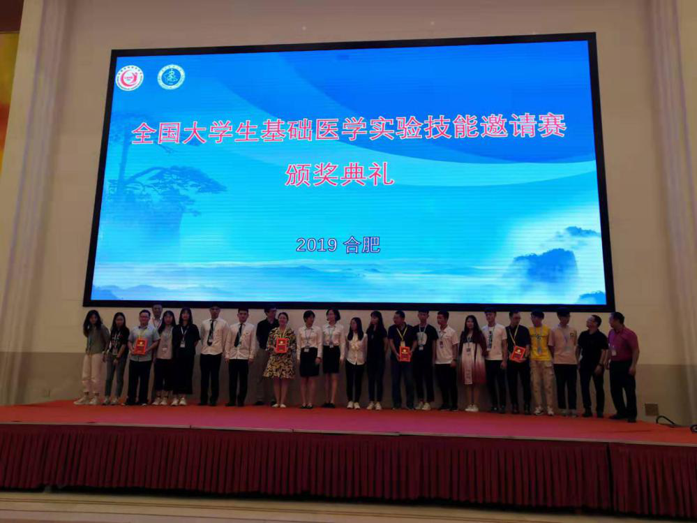 8月17日-20日,由中国高等教育学会医学教育专业委员会主办,安徽医科大学承办、安徽省病理生理学会协办的第六届中国医学高等教育信息化论坛在安徽省合肥市隆重召开。同期,由人民卫生出版社和安徽医科大学主办的首届全国大学生基础医学实验技能邀请赛也顺利进行。beat365英国官网网站新华学院(以下简称“我校”)师生应邀参加了本次邀请赛,经过激烈的角逐,我校参赛队伍荣获大赛二等奖。