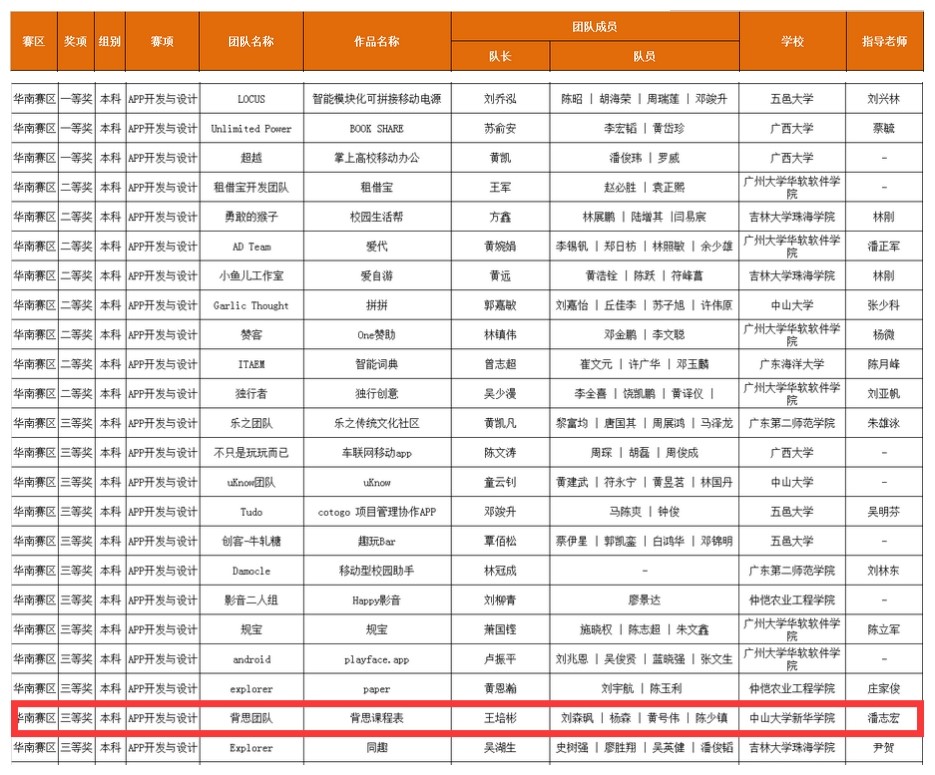 3月29日,2016年全国大学生“互联网+”创新大赛暨第四届发现杯全国大学生互联网软件设计大奖赛(以下简称“发现杯大赛”)区域赛获奖名单公布,我校信息科学学院潘志宏老师指导的15级软件工程专业曾思源同学作品“梦享青年”获得华南赛区(本科组网络营销技能)二等奖、15级软件工程专业王培彬同学作品“背思课程表”获得华南赛区(本科组APP开发与设计)三等奖。