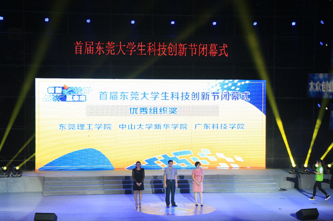 东莞市副市长喻丽君,市科技局局长吴世文,市教育局调研员黄金海,共青团东莞市委员会副调研员艾树珍及各高校的相关领导参加了闭幕仪式。我院副院长副书记蓝永金、团委书记殷丹,以及近百名来自中大新华的参赛学生应邀前往。