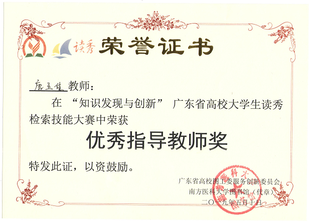 中大新华图书馆获广东省高校大学生读秀检索技能大赛“最佳组织奖”