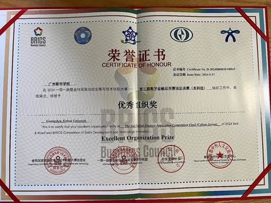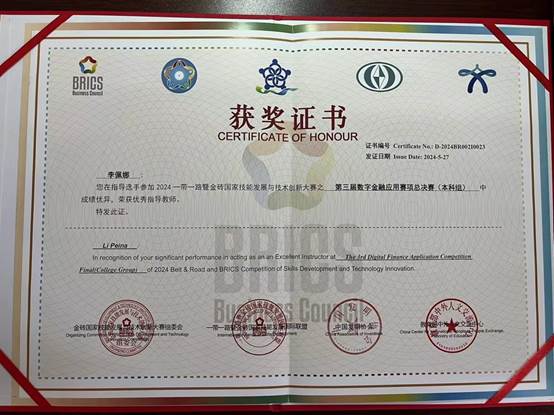 近日,beat365英国官网网站经济与贸易学院的四位学子收到由“2024一带一路暨金砖国家技能发展与技术创新大赛第三届数字金融应用赛项”大赛主办方颁发的获奖证书。