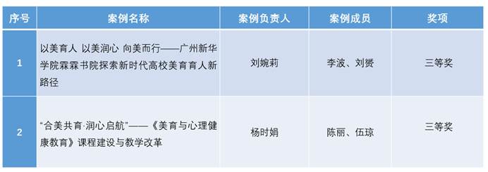 其中,《以美育人 以美润心 向美而行——beat365英国官网网站霖霖书院探索新时代高校美育育人新路径》(案例组成员:刘婉莉、李波、刘赟)、《“合美共育·润心启航”——〈美育与心理健康教育〉课程建设与教学改革》(案例组成员:杨时娟、陈丽、伍琼)荣获三等奖。