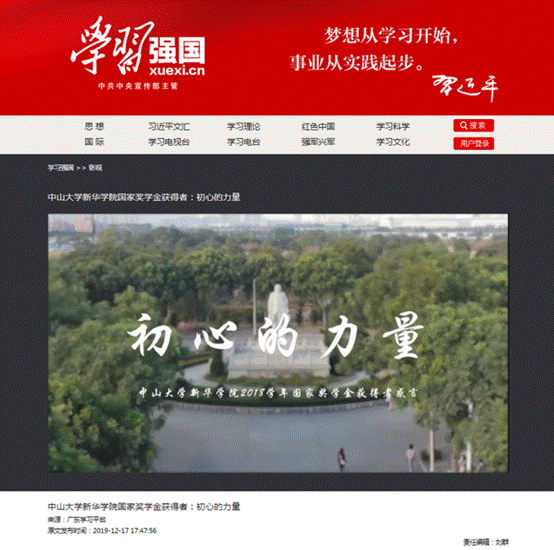 《学习强国》刊登我校优秀学生事迹微视频