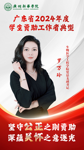 罗万玲,生物医学工程学院党总支副书记,原学生资助中心主任,从事学生资助工作10年,被评为“广东省资助先进工作者”;参编教材3本;发表论文5篇,其中资助工作相关论文3篇;参与校级以上课题12项,其中省级课题5项;获校级及以上奖项23项,获广东省高校学生资助工作课题成果二等奖、三等奖。
