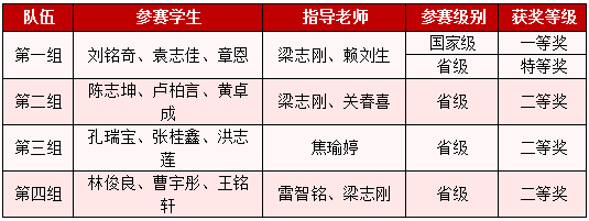 本届赛事分省赛和全国总决赛,在省赛中获特等奖的队伍方能晋级全国总决赛。在省赛中,学校信息与智能工程学院共派出了五支队伍,参加华南赛区“智能装备设计与数字孪生制造”赛项的角逐。在梁志刚、赖刘生、关春喜、雷智铭、焦瑜婷等老师的悉心指导下,学子们在省赛中表现突出,共荣获省赛特等奖1项、二等奖3项,其中特等奖队伍成功晋级总决赛。