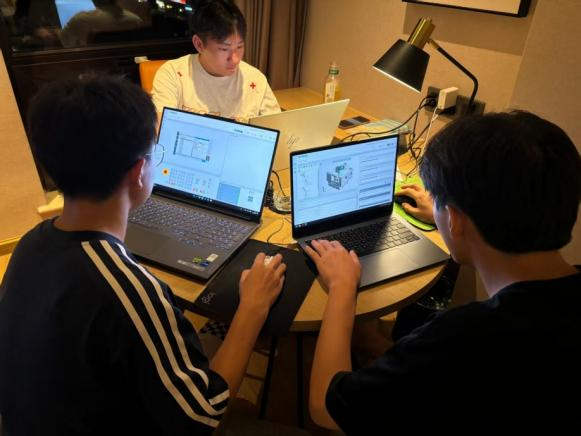 在备赛过程中,师生每日扎根实验室,昼夜打磨方案,迭代技术,用汗水夯实根基。决赛阶段,导师与队员通宵达旦,共研方案、联调设备。队长刘铭奇统揽全局,主攻数控建模与机床仿真加工,为团队筑牢根基。章恩专攻工装设计、图纸绘制与机床搭建,为项目实施提供有力技术支持。袁志佳聚焦PLC设计与界面开发,以代码构建智能控制核心,开发出高效稳定系统,为项目注入智能灵魂,是团队在智能控制领域的坚实支撑。师生勠力同心,凭借顽强毅力和拼搏精神,终摘桂冠。