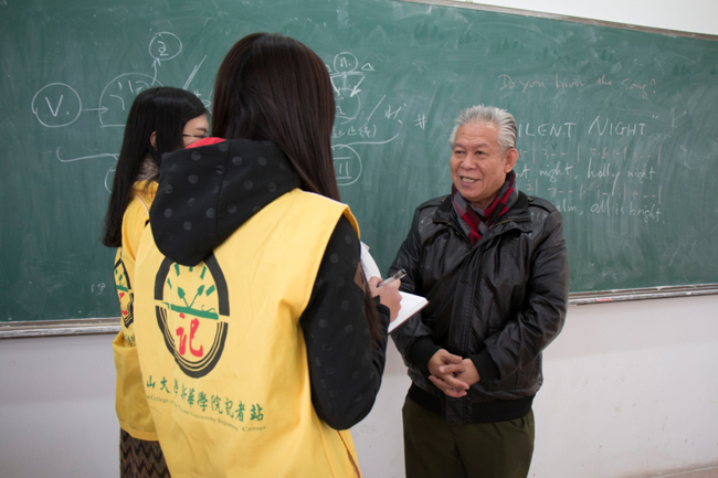 为了激励学生上课的积极性,课前他还会点名表扬前十名最先到课室的的同学。对于学生们称他为“男神”的事情,王老师坦言感到“shock and surprise”,也感谢同学们对他工作的支持。
