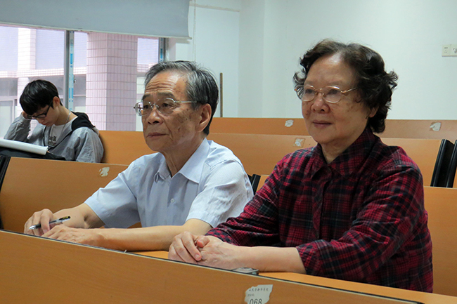 潘琪教授和陈荣冠副教授在课室听课