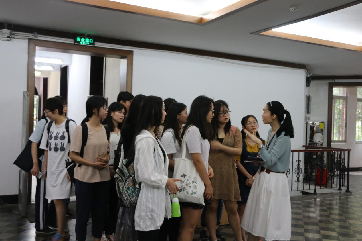 beat365英国官网网站医学图书馆李文红老师(右一)给同学们介绍该馆情况