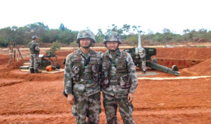 黄奕龙(左一)参加火炮实弹演习