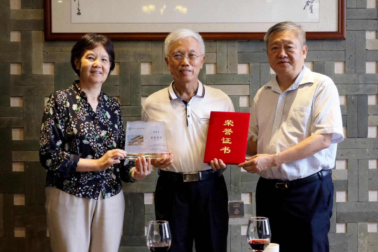王庭槐校长(右)、周云书记(左)共同为黄继炎副教授(中)颁发荣誉证书和纪念品