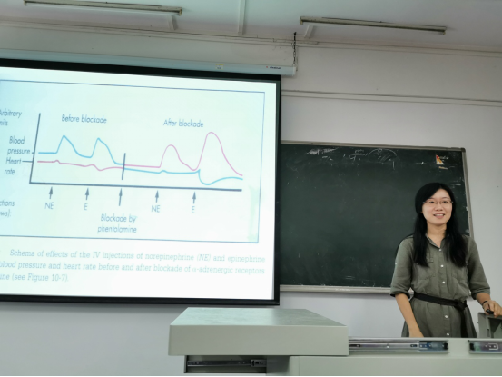 曹老师认为药理学每堂课涉及到的知识点很多,教学要注意方式方法,课堂上列举大量临床和生活中的例子,帮助学生理解记忆知识来减轻学生的负担。想着同一学科门类下的课程的知识点是可以融会贯通的,若能将知识点相似、相通的专业课程融为综合性的课程,便可帮助学生会建立起更加系统的知识体系,也能更好地理解所学内容。她一直在思考,也在课堂上摸索实践这一教学改革思路,如将生理学、药物化学等专业课程融汇到药理学课程的教学中。