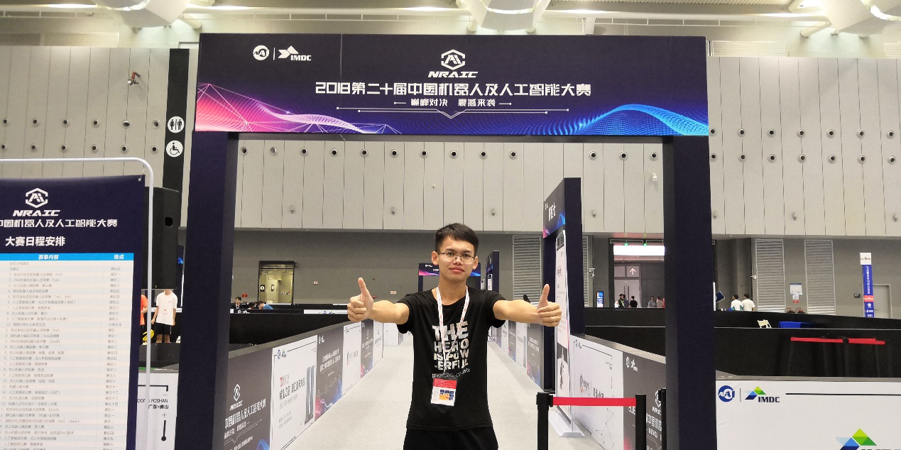 2018年10月,第二十届中国机器人及人工智能大赛在佛山潭洲国际会展中心顺利举行,我校信息与科学学院学生张秉天与其团队在此次比赛中荣获一等奖。大赛上,群雄逐鹿,张秉天和他的团队在极其激烈的角逐中勇夺桂冠,依靠的是他们的团结、努力和坚持。