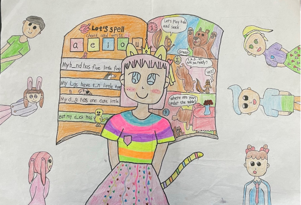 小朋友们真的很十分可爱,陪伴着他们我仿佛也充满了能量。去年我组织小朋友参加了“乡教计划”项目办的“百师印象”的绘画活动,有一位小朋友以我的形象作画,形容我是个“猫咪”老师——平时很温柔,但是他们一犯错我就会很严厉。