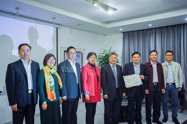 我校领导与唐清泉教授(右三)合影 王仲贤摄
