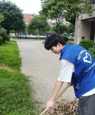 黄健同学参加“美化校园”志愿活动