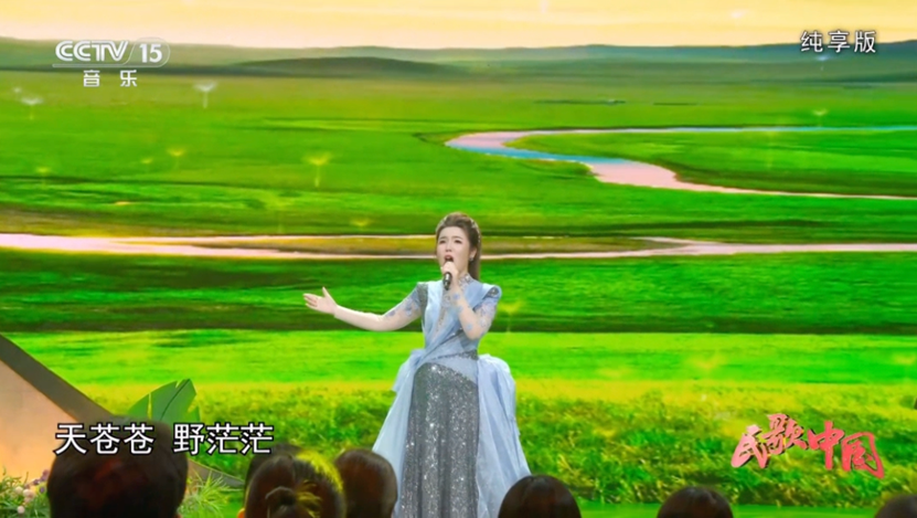 2023年,她与青年高音歌唱家于海洋合作的《六口茶》在《民歌中国》播出;2025年,参与录制《民歌中国》七夕特别专场节目,与著名歌唱家马忠伟对唱《尕妹妹的山丹花儿开》,2026年参与录制《民歌中节目》演唱《敕勒歌》。通过这些不同时期的舞台呈现,她持续展现出以美声技法融合民族音乐元素的独特风格,让传统民歌贴近今日青年的情感脉搏,真正做到了“老歌新唱,声入人心”。